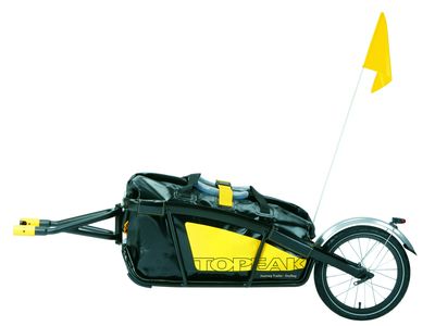 Jeg har været virkelig glad for min BOB-cykeltrailer, men den kan jeg ikke længere finde nogen steder i Danmark. Den ser ud som denne trailer fra Topeak. Den er let at håndtere.