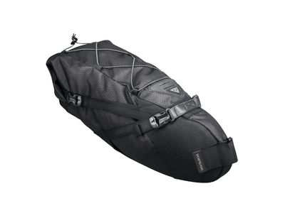 Topeak har lavet en sadeltaske med en vandtæt membran indvendigt og elastiksnor på toppen til ekstra udstyr. Tasken har justerbare remme, så det er let at sætte den på cyklen og tilpasse den til indholdet. Tasken har en air-release knap, så du kan presse overskydende luft ud.